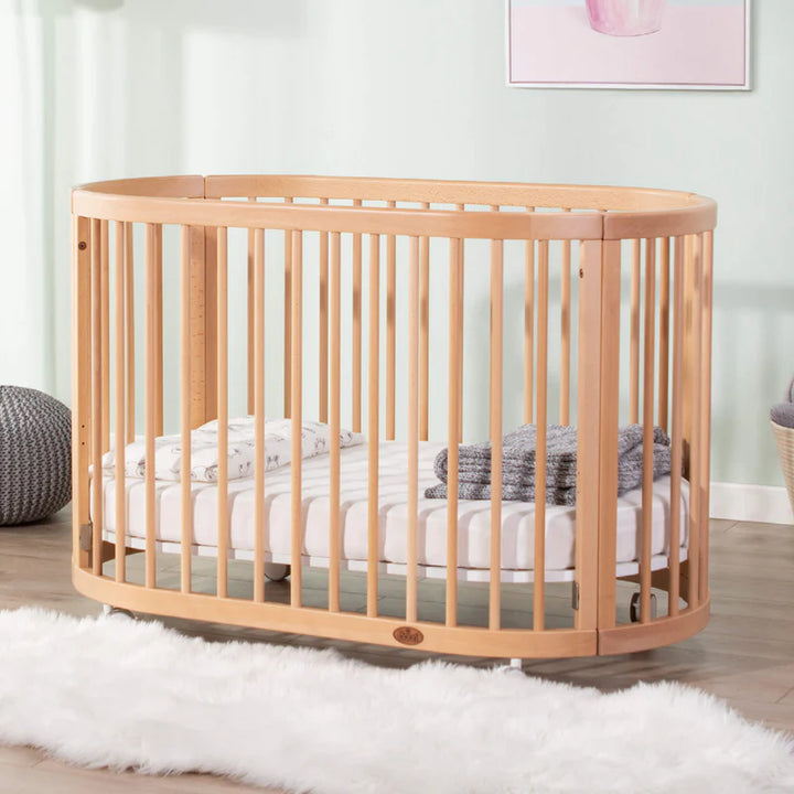 木製のベビーベッドで 0歳から4歳 ごろまで使用できる 1台5役 の長く使用できるベビーベッドです。