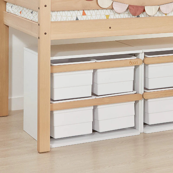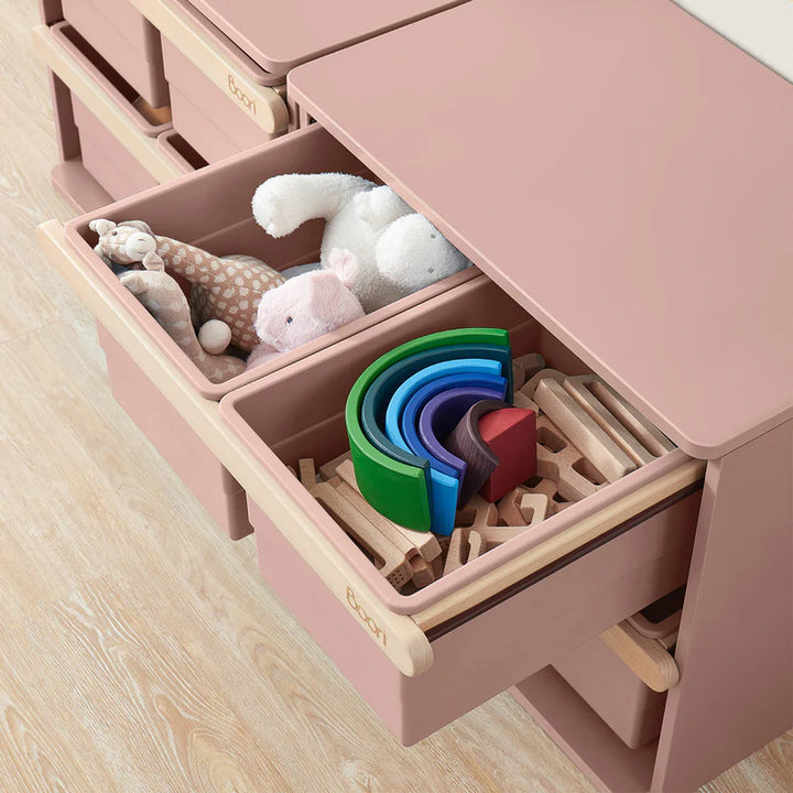 お子様の寝室やプレイルームを散らからないように設計された当社のティディトイキャビネットには、全幅の引き出しが2つあり、両方の引き出しに2つのプラスチック製の収納タブが付いています。引き出しのフレームは丈夫な無垢材で作られており、収納槽は簡単に取り外しできるので、おもちゃをきれいに戻すことができます。